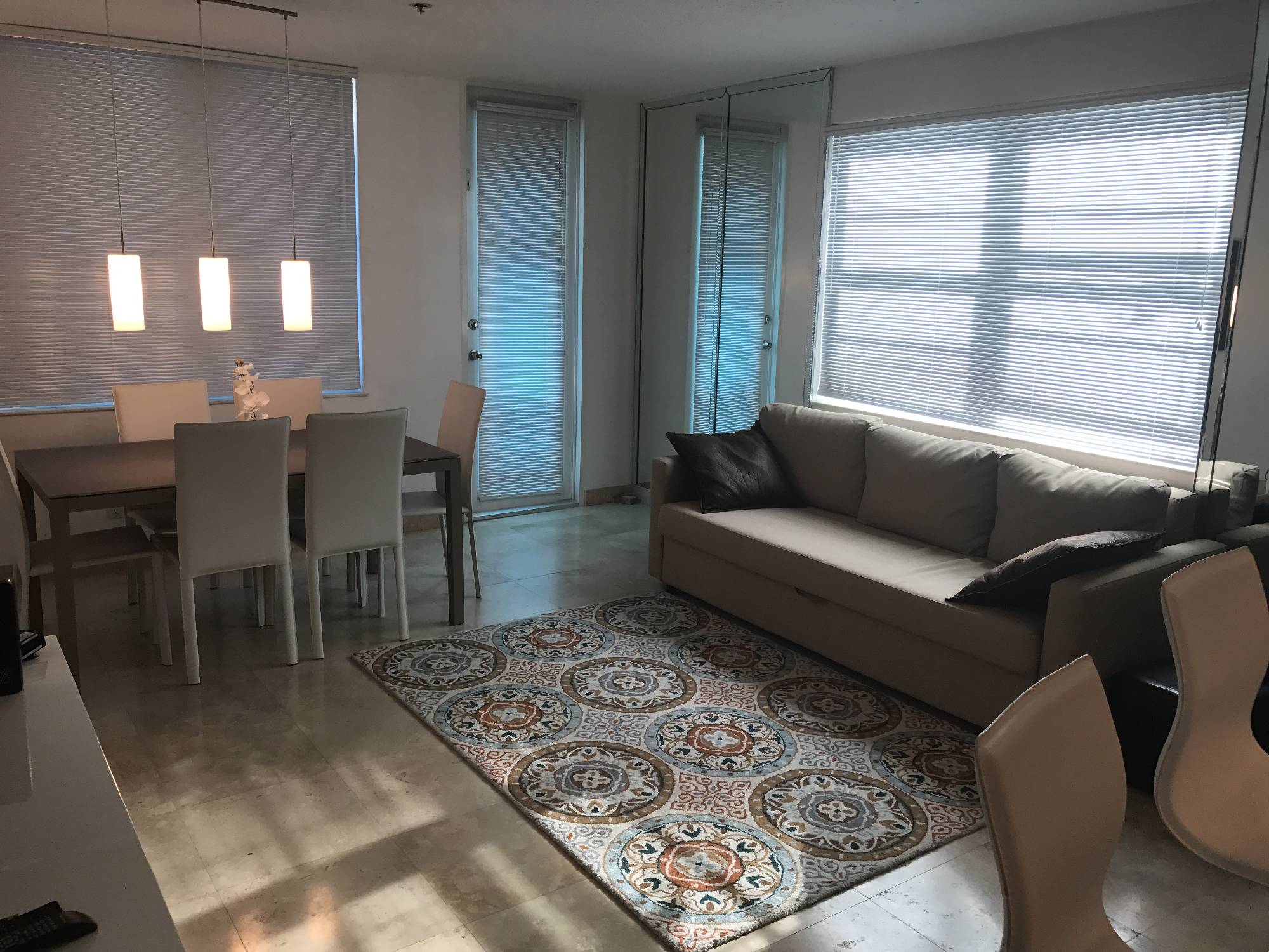 Luxury ocean front building with deeded beach access. High rise condo with marble floors, open kitchen granite counter tops, white wood cabinets, freshly painted, tastefully decorated, fully furnished, short term rentals min 30 days. Fabulous city and water views from your private balcony, perfect for entertainment. Walking distance to shops, restaurants on Lincoln Rd, Ocean Drive and Collins Avenue. Building offers 24 hr front desk & management, heated pool, brand new lobby and elevators, state of the art gym and more. All utilities included in the rent. Fast approval.