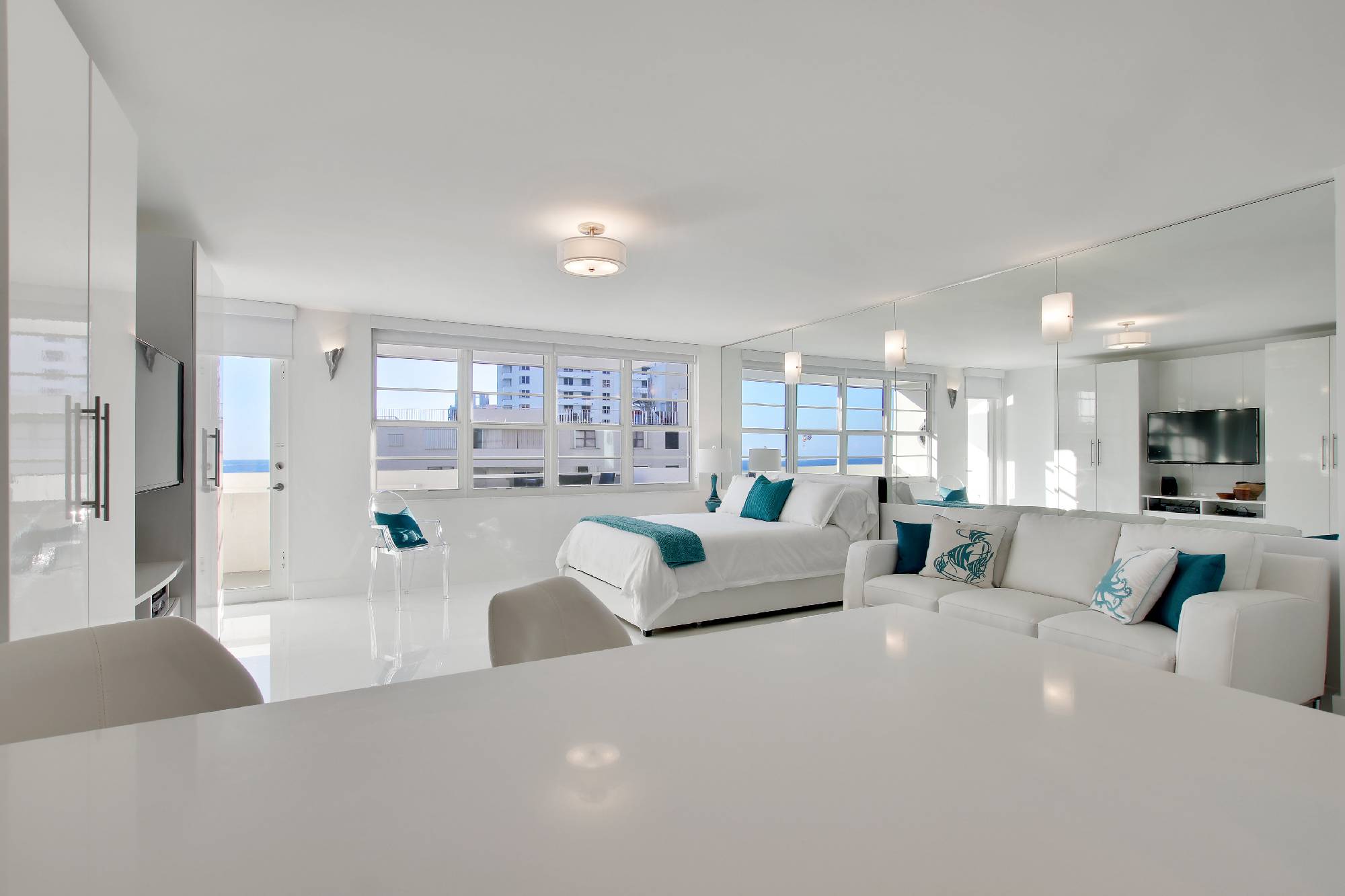Gorgeous ocean and pool views from private balcony on the quiet South side of the building. Completely Remodeled. Tastefully furnished. White Quartz floor throughout, stainless steel appliances Sub Zero. You can see the ocean from your Spa shower. Building offers direct beach access, heated pool, gym, renovated lobby, receiving area, 24 hrs front desk and security, laundry in every floor, central A/C, clubroom and more. Walking distance to famous Ocean Drive, Lincoln Mall, 5 stars resorts, great restaurants and shops. Rent includes all: electricity, wifi internet, digital cable, water and 1 valet parking. Quick online approval, Minimum 30 days rental. Call for availability.